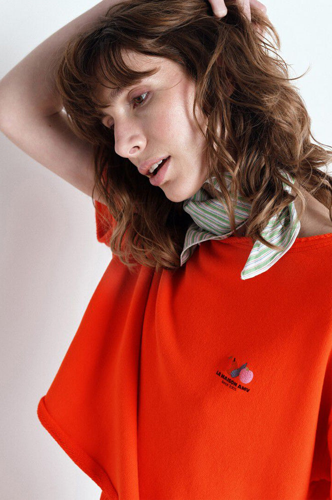 Oversized style t-shirt with rolled hems and made from a comfortable sweatshirt style fabric. A great piece for everyday wear, features a vegetable themed print above the logo.