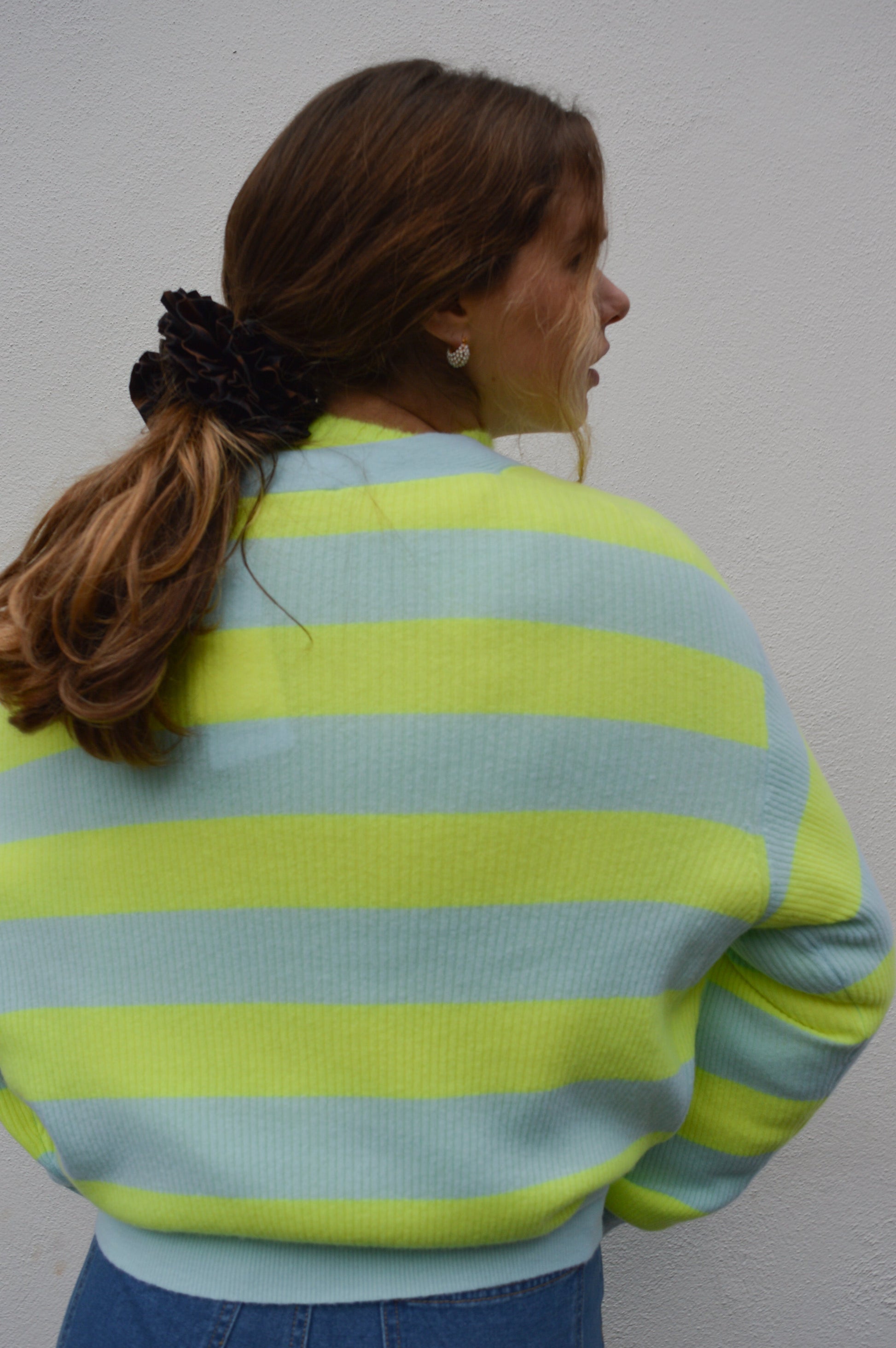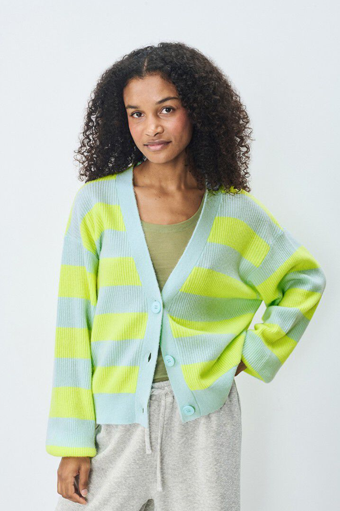 American Vintage Raxow Neon Yellow Crystal Striped Cardigan