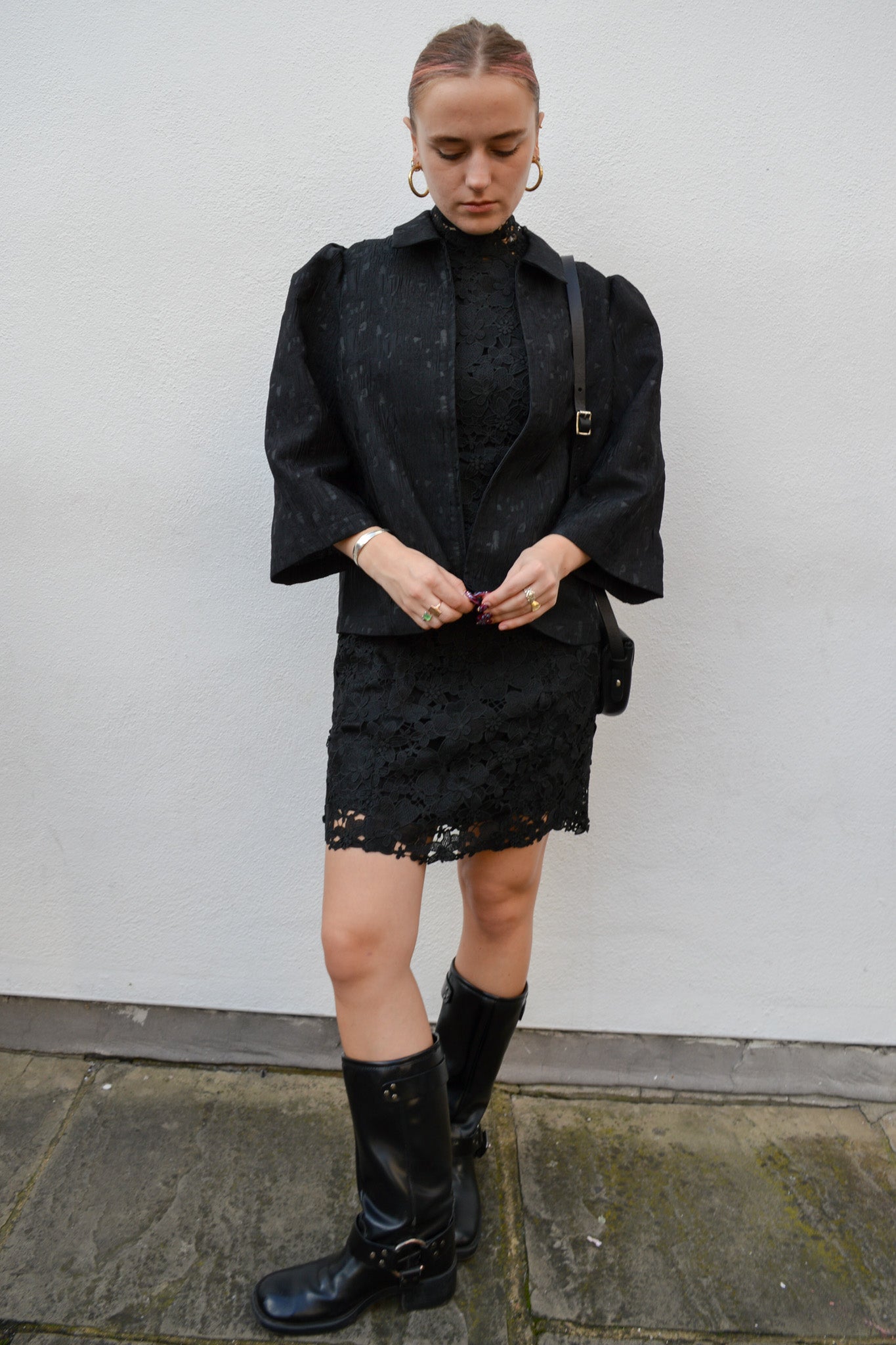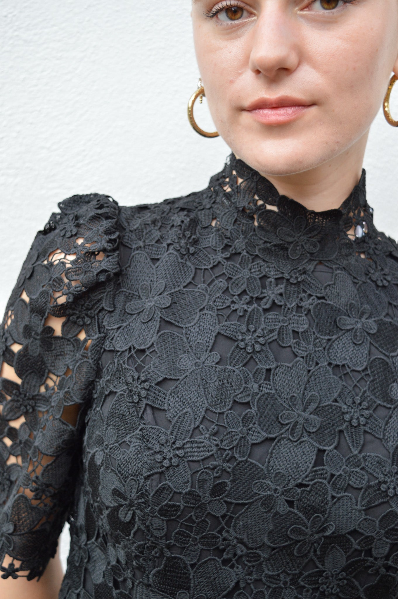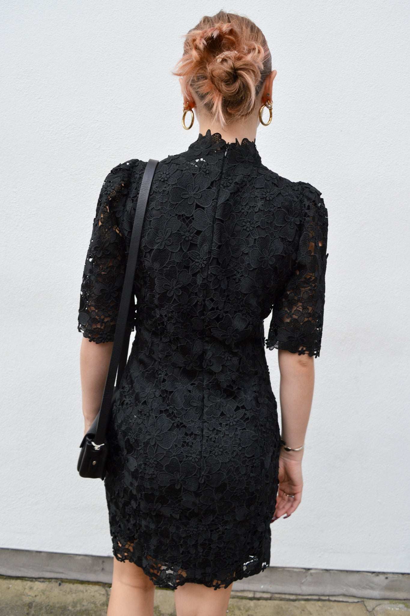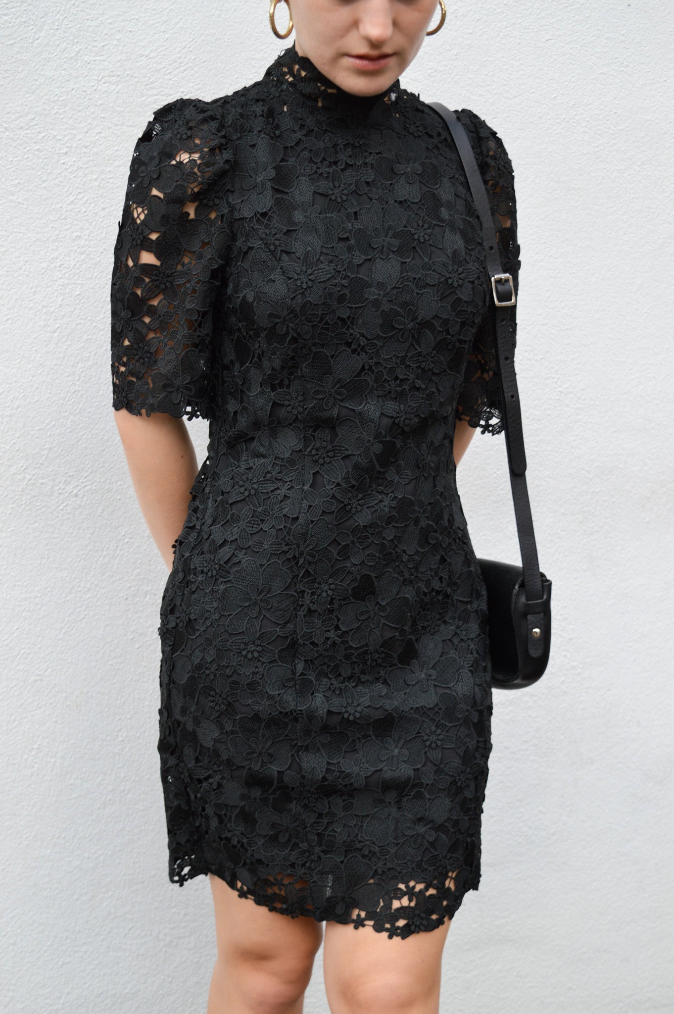 The Ba&sh Pavel Black Lace Dress offers a figure-flattering fit with a slightly high, comfortable neck and short, wide puffy sleeves. The back zip fastening ensures easy wear, while the slit detail on one leg adds a subtle touch of elegance.