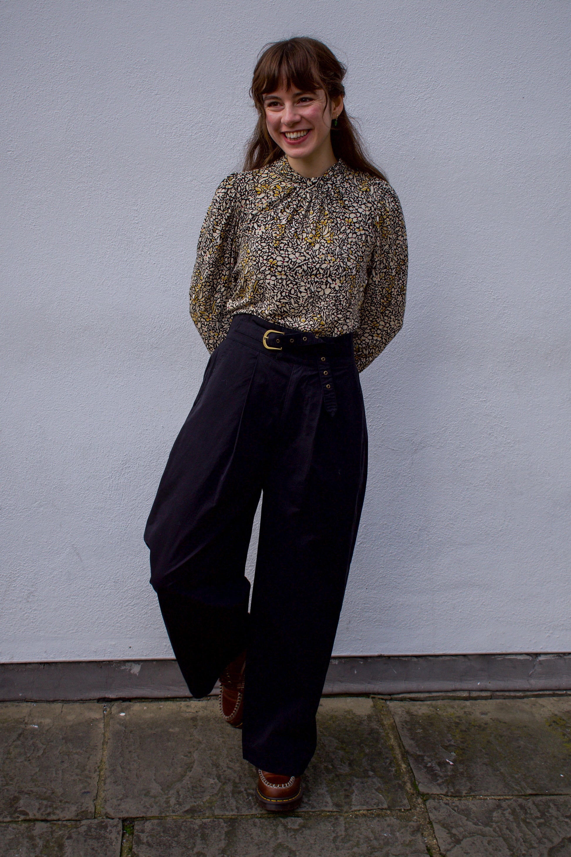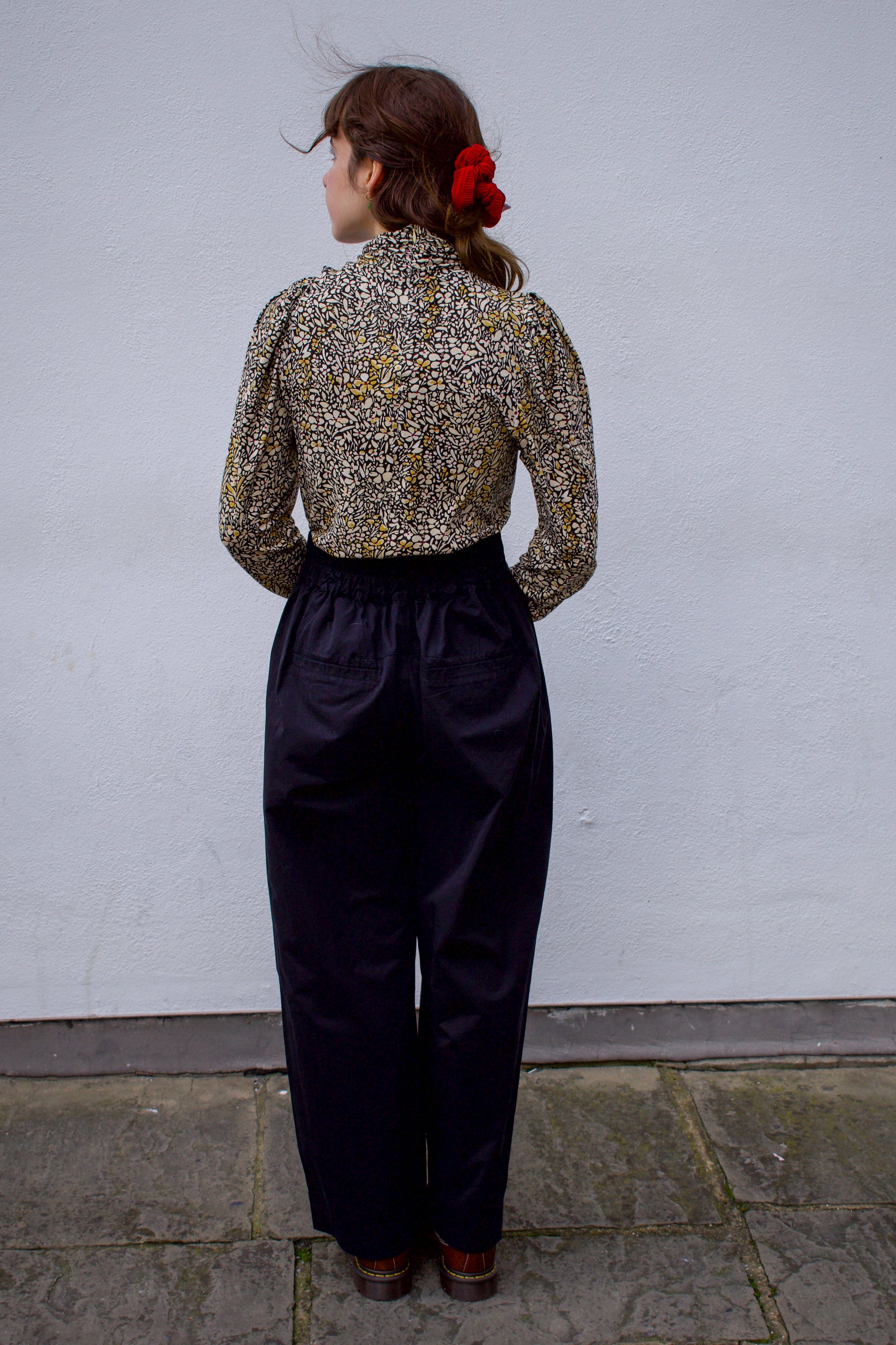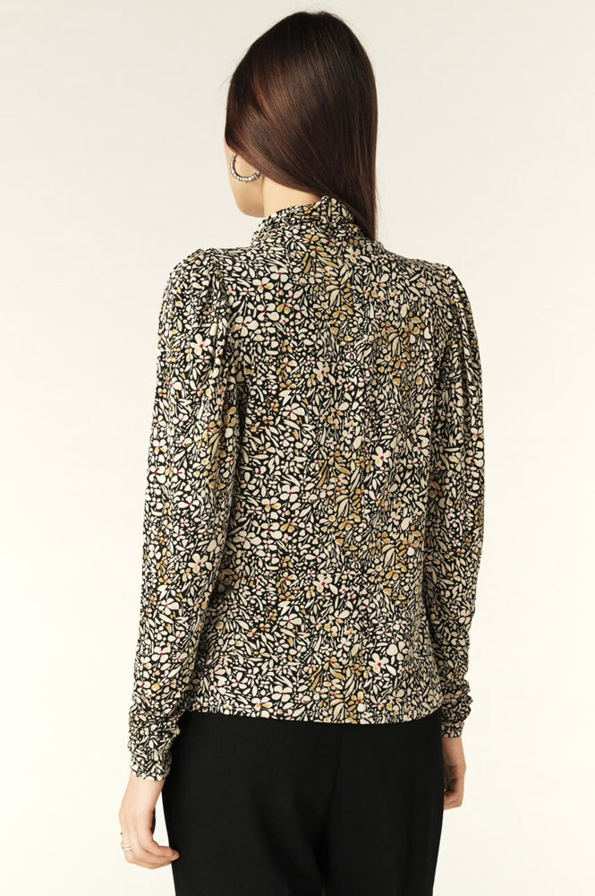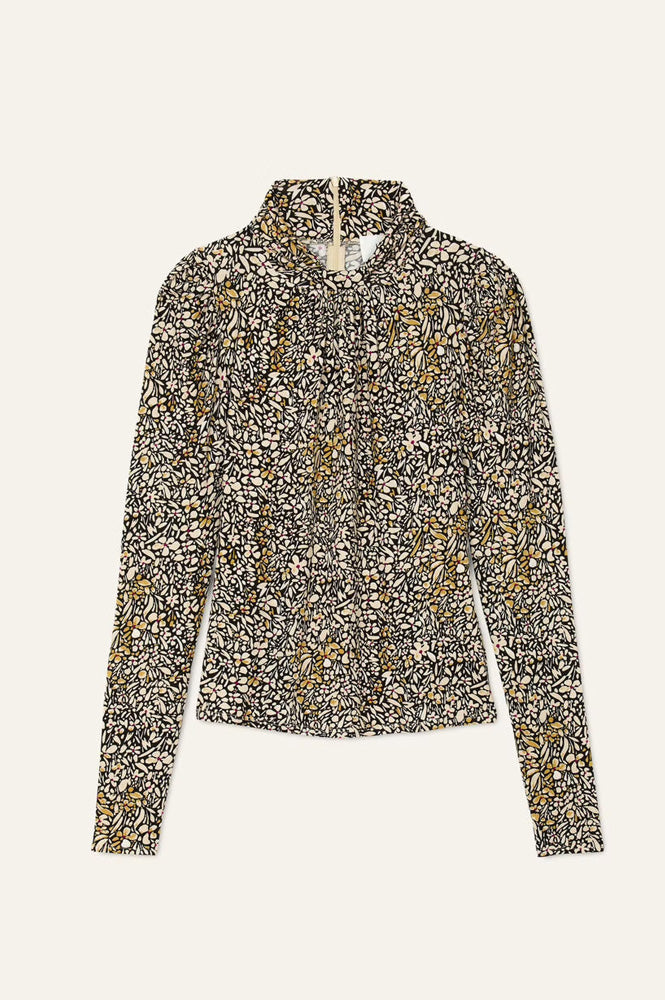 This fitted top is designed for both comfort and style. The flowing, patterned fabric feels great on the skin, while the high funnel neck and long sleeves add a touch of sophistication. The shirred collar and gathered shoulders give a chic, elevated look for any occasion.