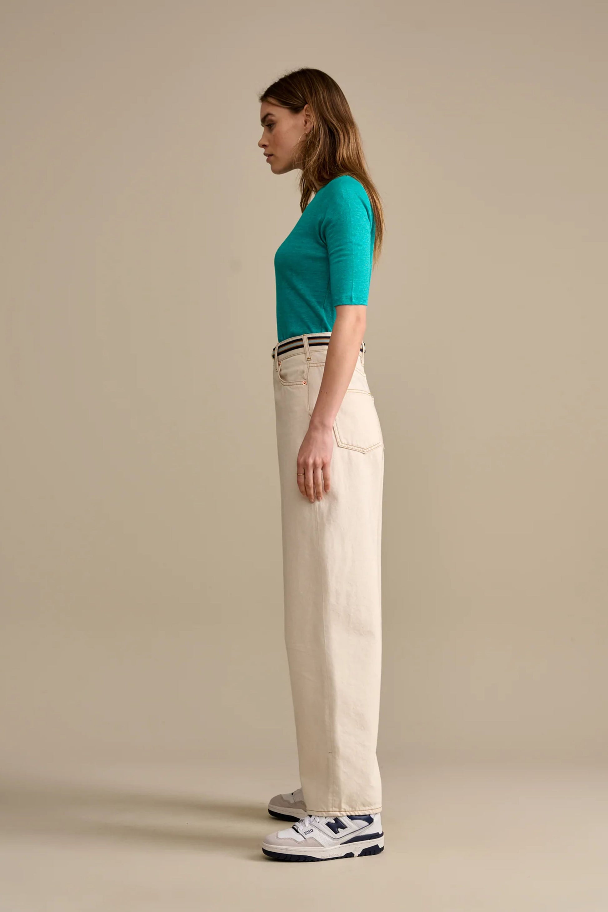 Introducing Bellerose Poker Natural Jeans - the wide leg dream. With its POKER jeans' wide fit and flared legs, this style offers a flattering and character-filled look. Plus, sizes run big so we recommend going down one size for the perfect fit. Elevate your denim collection with these must-have jeans.