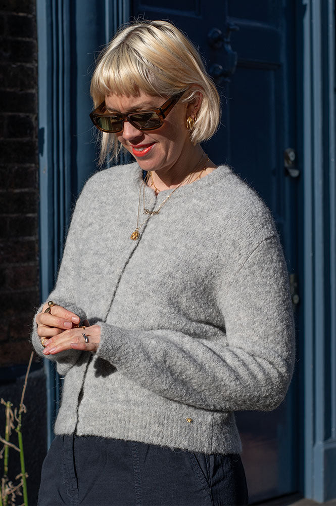 Wrap yourself in elegance and sophistication with our Des Petits Hauts Cristie Grey Cardigan. This button-up, cosy cardigan boasts long sleeves and a crew neck, perfect for keeping you warm and stylish.