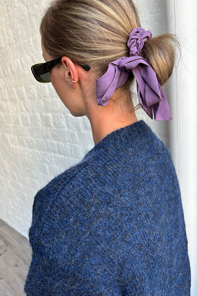 Scoop neck cardigan in a soft blue, with pearl style buttons running up the front. long sleeve and boxy fit with ribbed hem and cuffs.