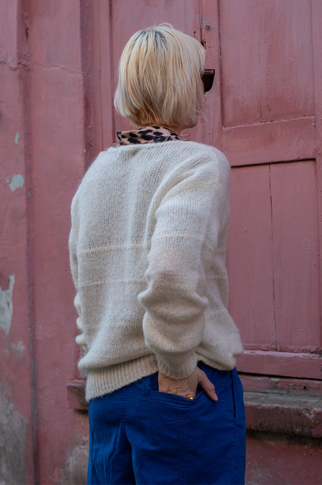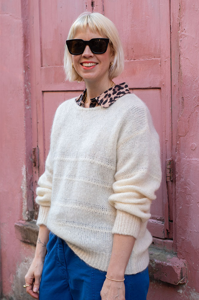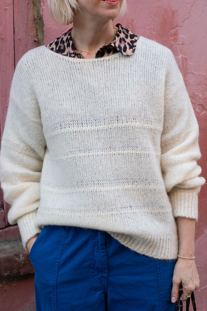 Introducing the Maison Anje Beryton Uni Milk Pullover. This boxy boatneck jumper provides a relaxed, comfortable fit.