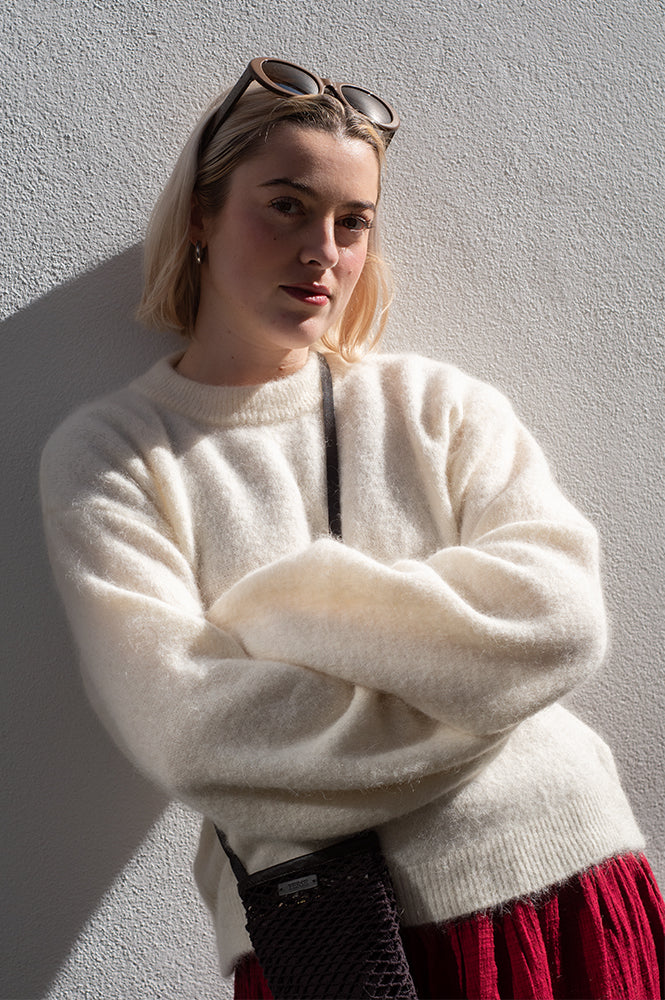 Introducing Noella Kae Oyster Knit Jumper. This Classic jumper features balloon sleeves, adding a touch of elegance and style to any outfit. Stay cozy and chic with Noella Kae.