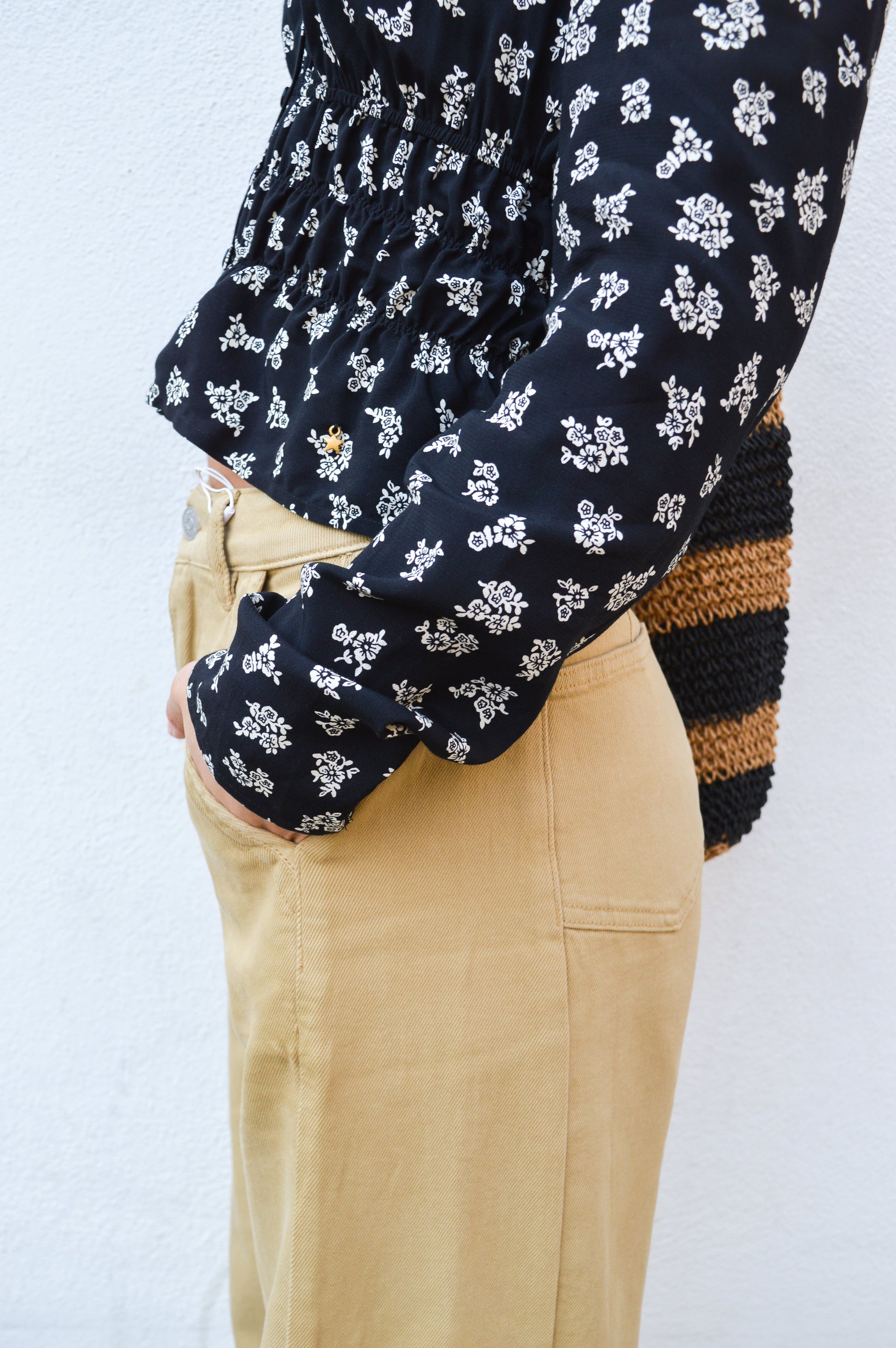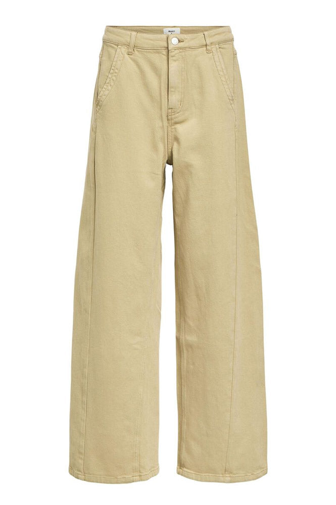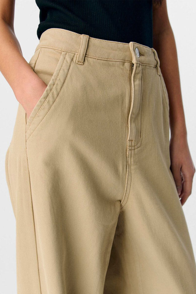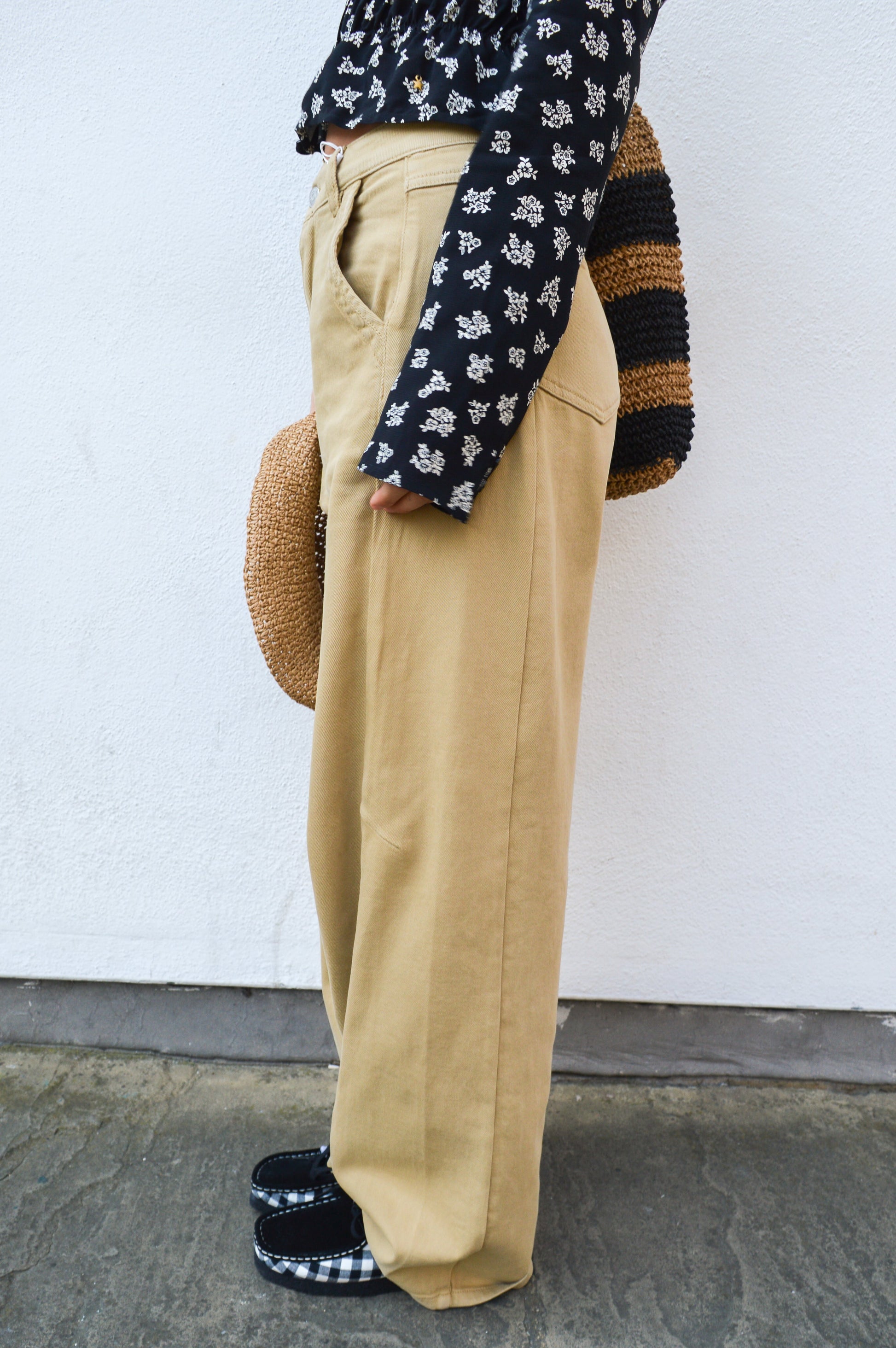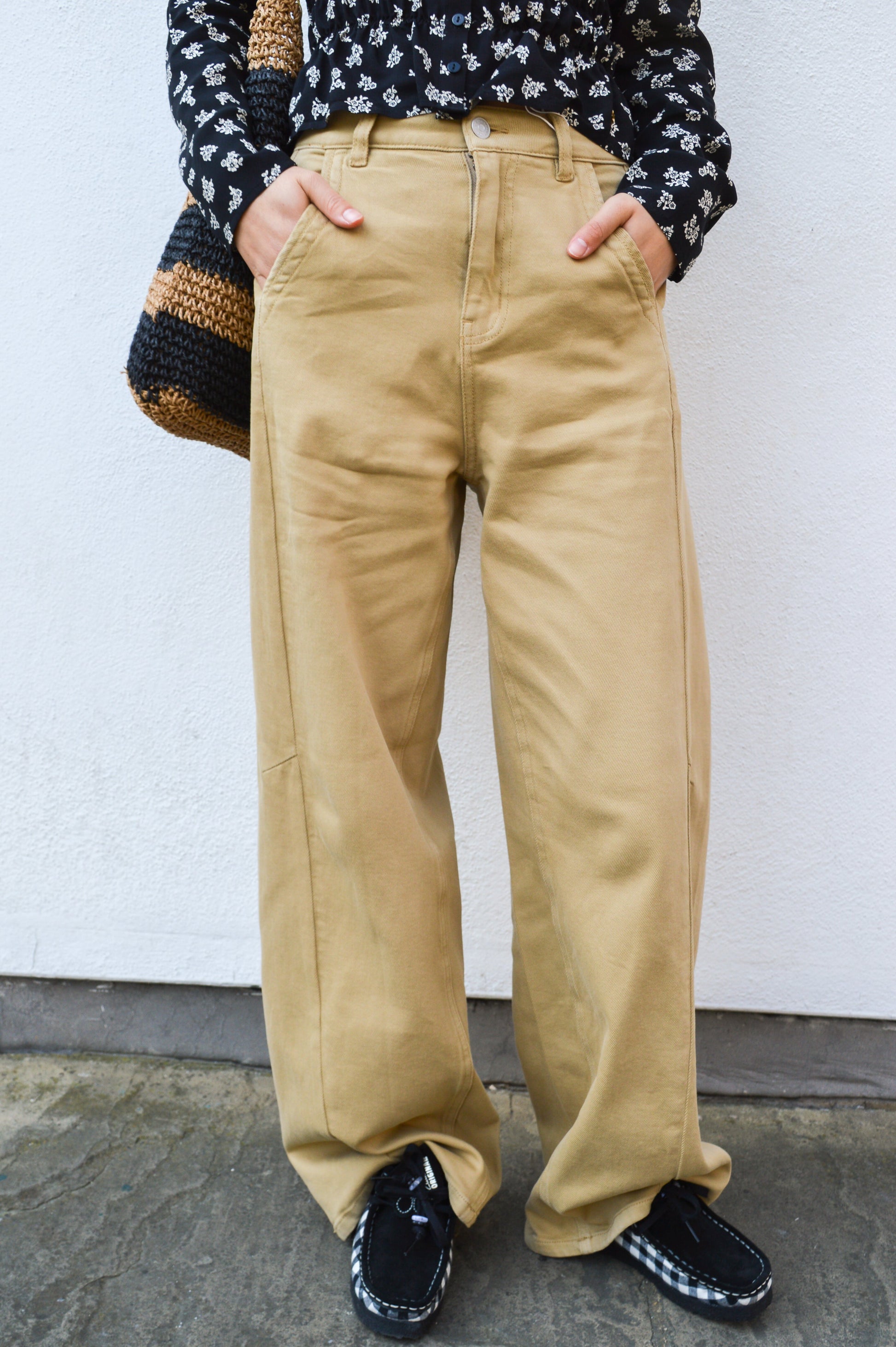 Mid rise wide leg jeans with seams and shape to the leg that create a soft rounded shape on the leg. Has slanted side pockets and back patch pockets. They are a loose and comfortable fit jean, in a great colour to style up in the warmer weather. Pair with a white blouse and boots for an effortlessly chic look or looks great with printed pieces.