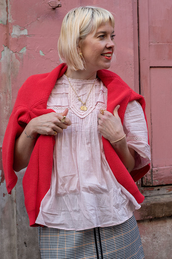 GALORE is a boho shirt with a lot of embroideries and pleats in a light organic cotton quality. The shirt has flowy sleeves and a button closure at neck.