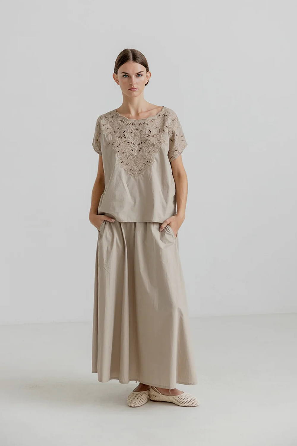 HAILEY is a midi length skirt with pockets and an elastic waist. The skirt is part of Project's basic collection made of 100% organic cotton.