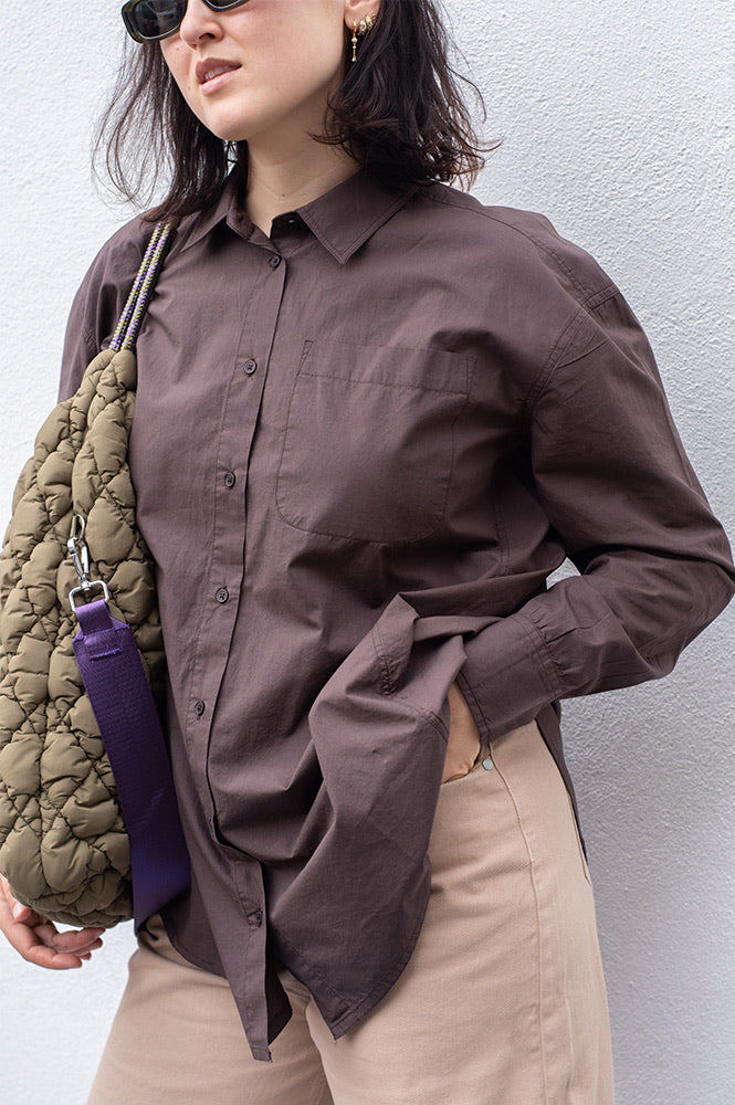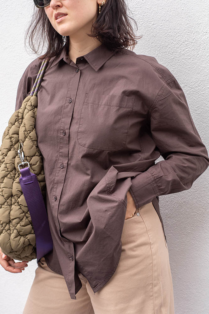 This shirt has a more oversized boyfriend look. It is a timeless shirt made in delicate organic cotton. It has the same soft feeling and comfortable fitting, perfect for transitional weather and is a lightweight piece great for layering or wearing as is.