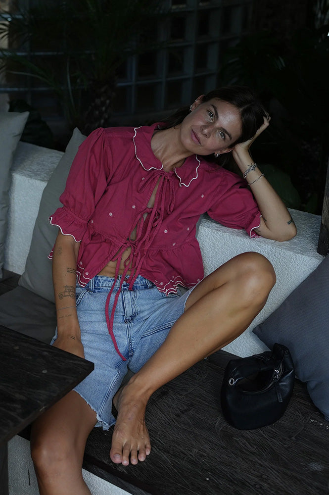 Seventy + Mochi Ana Tie Front Vintage Red Blouse