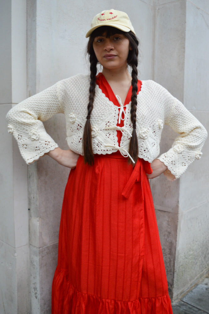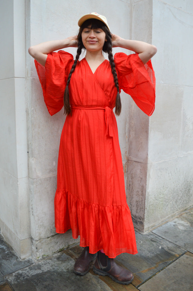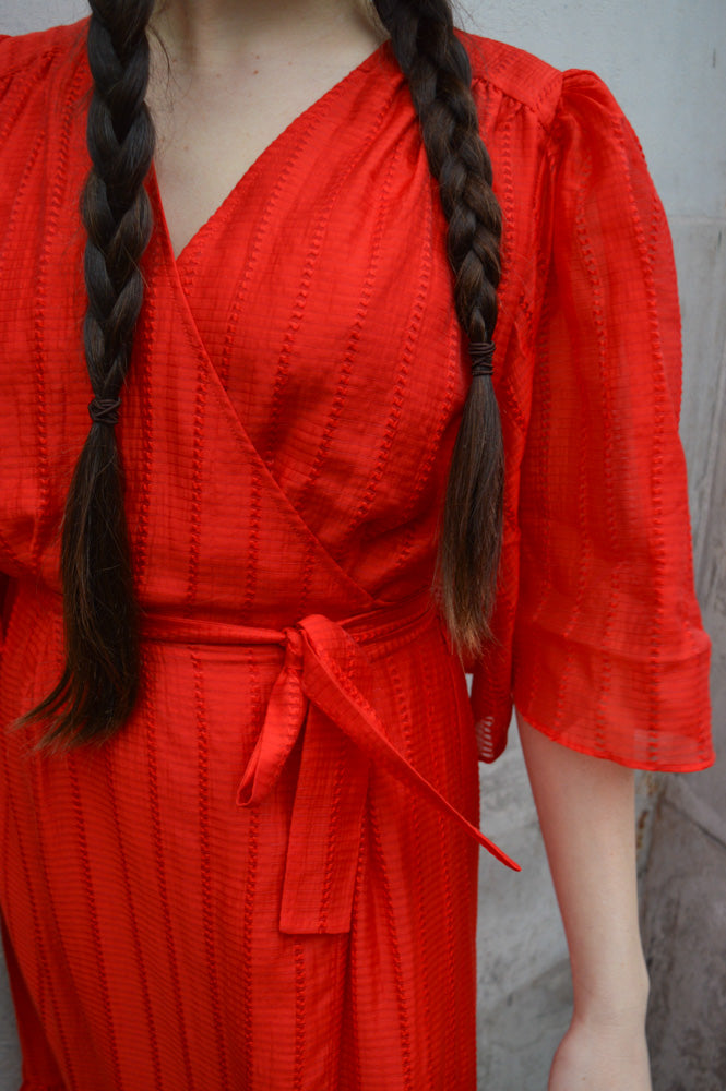 Stella Nova Pointelle Flame Red Wrap Dress